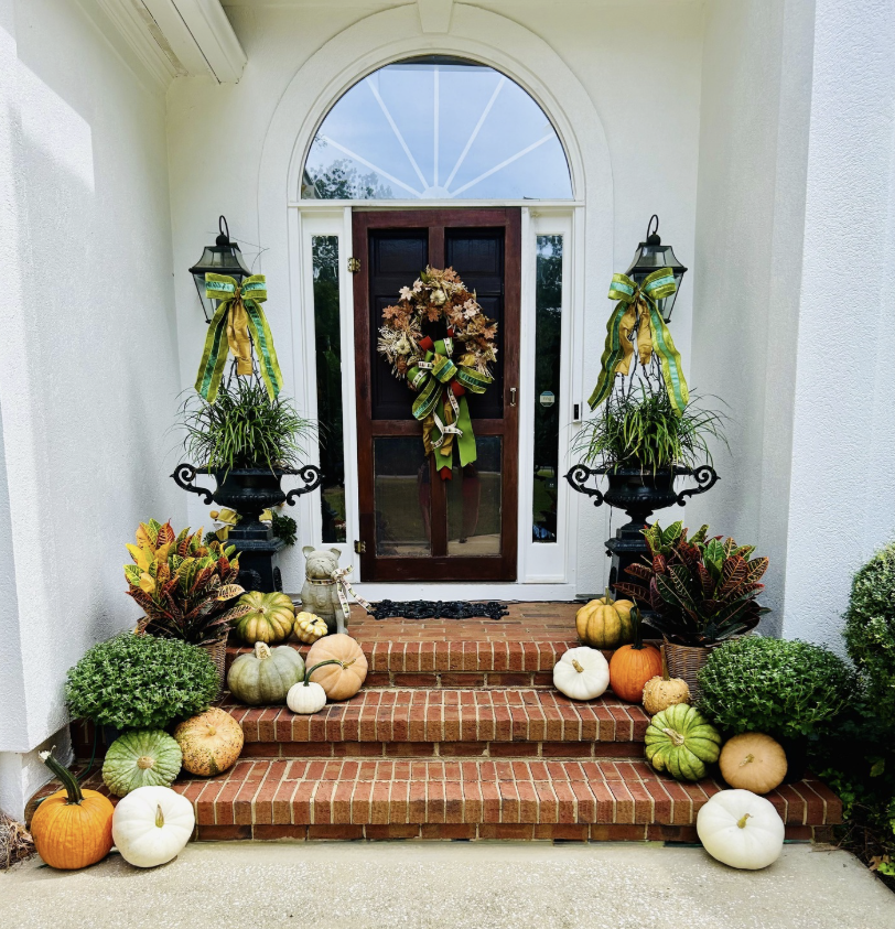 During the autumn seasons, we offer curated fall pumpkin packages featuring cascading pumpkins paired with a thoughtful mix of seasonal flowers. These installations create a warm, inviting autumn statement perfect for front porches and entryways.